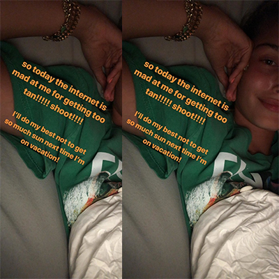 Прошлые выходные у Хейли (22) и Джастина (25) прошли под жарким солнцем на Багамах. В Сеть попало не так много фотографий, но и этого хватило для хейтеров, которые посчитали Хейли «слишком загорелой». Жена Джастина молчать не стала и вчера ответила критикам в Stories: «Итак, сегодня Интернет злится на меня за то, что я слишком загорелая. В следующий раз, когда буду в отпуске, постараюсь не загорать!». Держит удар.