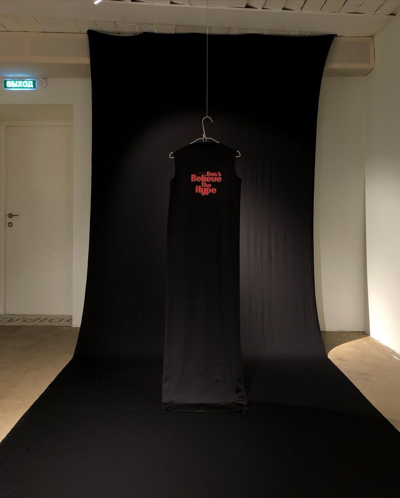 На манекене. Мне кажется, сейчас очень сильно раздувают историю с персонажами. А одежда отходит на второй план. Хотя, конечно, одежда – часть декорации. Но уж очень много раздувания этих персонажей, которые достаточно безответственно относятся к известности.