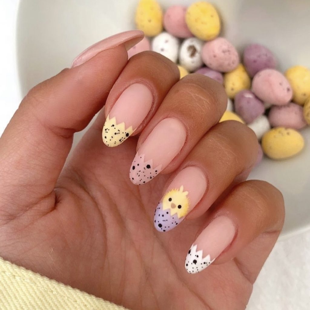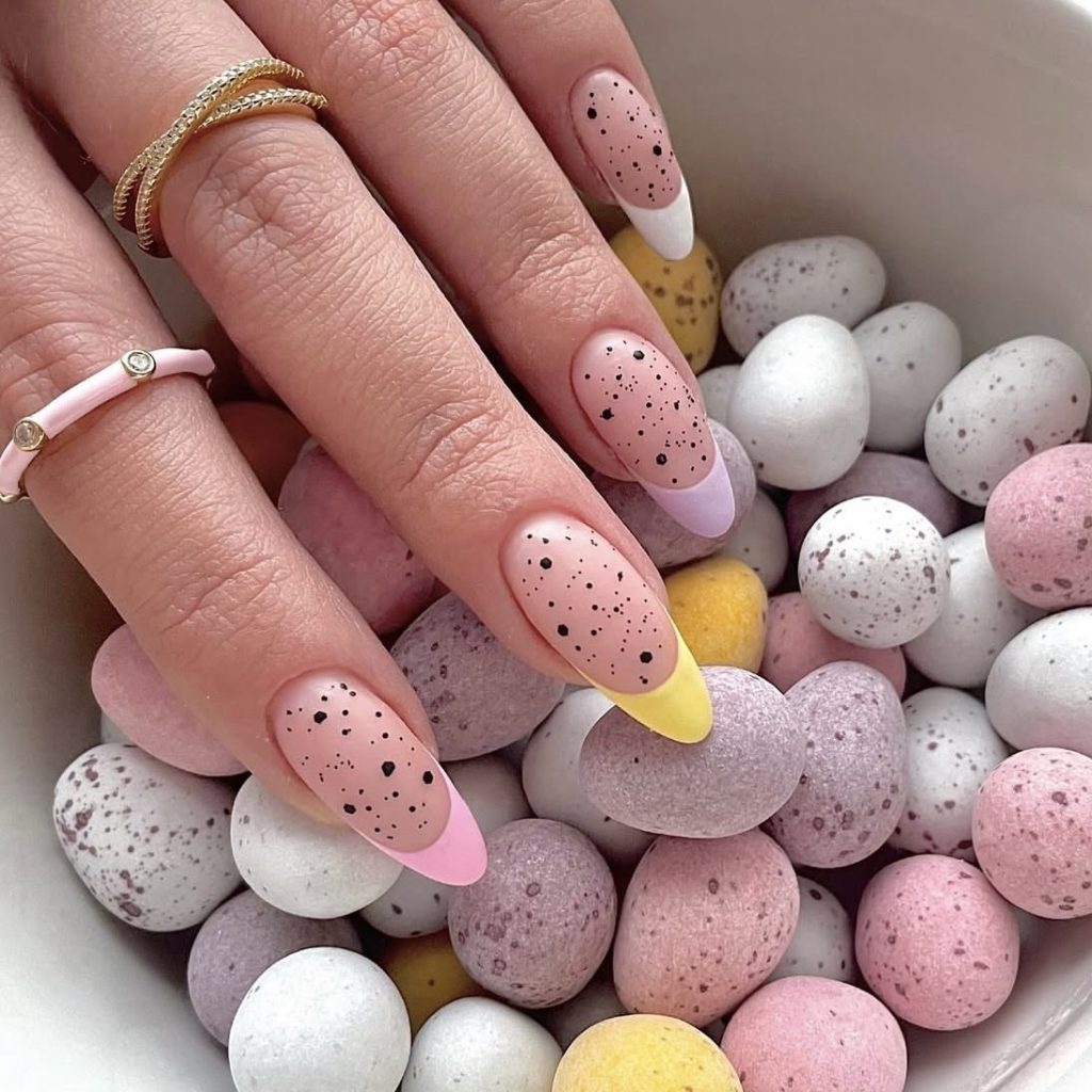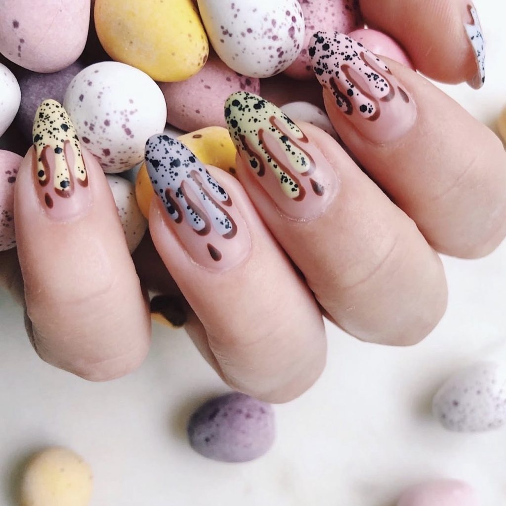 Дизайн «перепелиное яйцо» был в тренде еще несколько лет назад. И вот, он снова возвращается. Инфлюенсеры вспомнили нейл-арт из-за приближения Пасхи, поэтому не просто возродили тренд, а немного преобразовали его.
