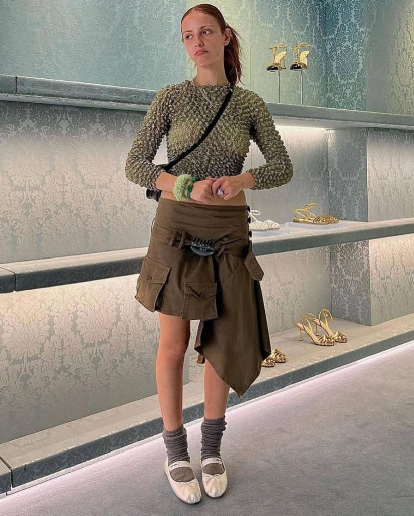 В последние сезоны особой популярностью стала пользоваться тенденция под кодовым названием balletcore. Но кто бы мог подумать, что последняя достигнет и больших социальных масштабов. Начиналось все, скажем так, как обычно. На осеннем показе сезона 2022 для Miu Miu Миучча Прада презентовала настоящие балетки с бантиком и ремешком на стопе и последние мгновенно разлетелись по ведущим модным инфлюенсерам. Да так, что обувь по данным аналитической платформы Lyst стала самым продаваемым айтемом за 3-й квартал этого года.