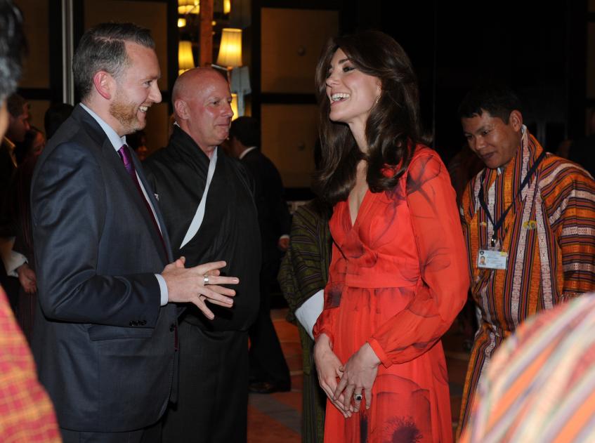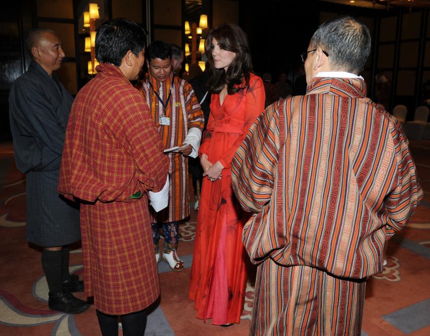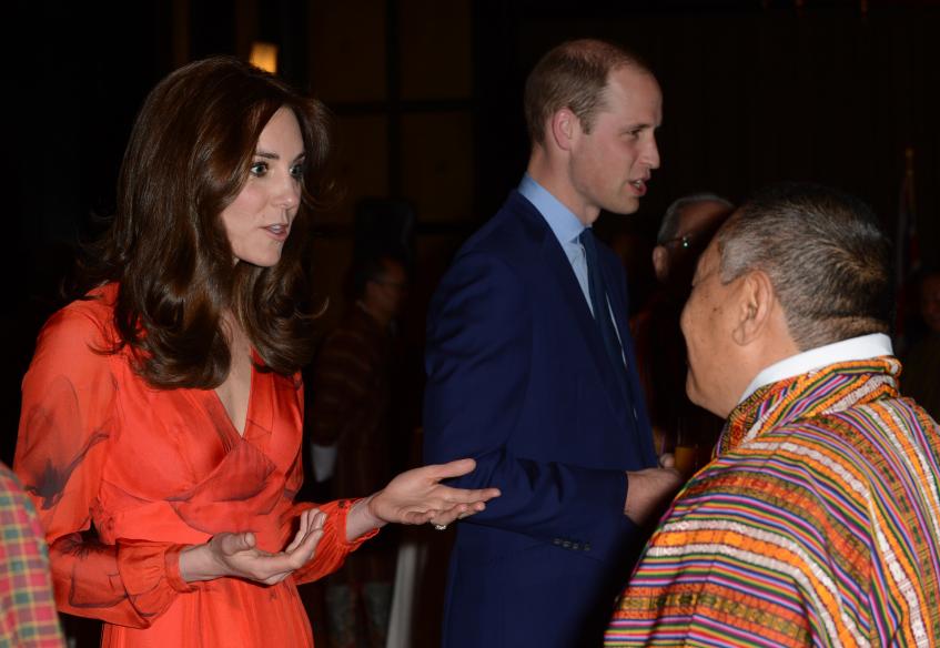 16 апреля завершился многодневный тур Кейт и Уильяма по Индии. А вчера пара совершила 6-часовой поход по долине Паро и посетила буддийский монастырь Такцанг-лакханг. Однако интригующие снимки были сделаны вечером того же дня, когда супруги появились на приеме в отеле Taj Hotel в столице Бутана, Тхимпху.
