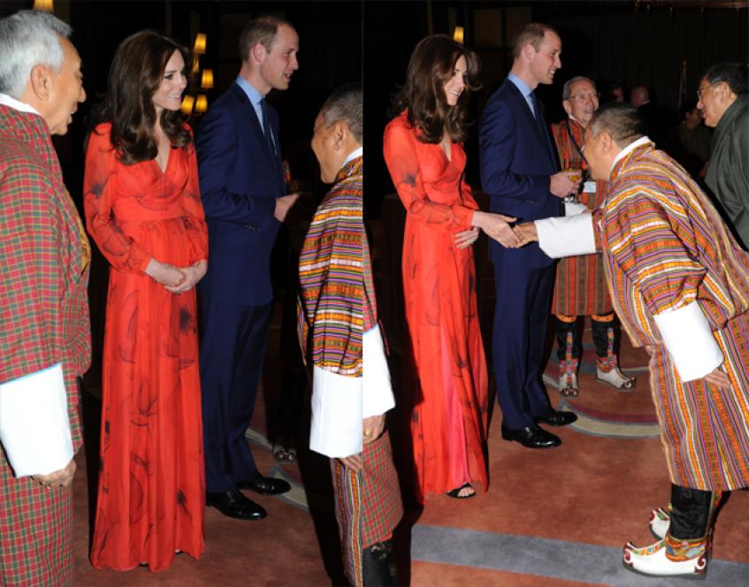 16 апреля завершился многодневный тур Кейт и Уильяма по Индии. А вчера пара совершила 6-часовой поход по долине Паро и посетила буддийский монастырь Такцанг-лакханг. Однако интригующие снимки были сделаны вечером того же дня, когда супруги появились на приеме в отеле Taj Hotel в столице Бутана, Тхимпху.