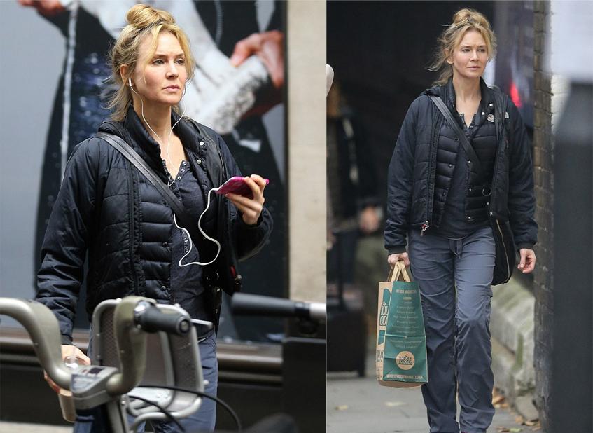 Именно там ее и застали папарацци. По всей видимости, Рене решила пройтись по магазинам, чтобы снова вернуться в образ незадачливой девушки, надев свободные спортивные штаны, кроссовки, серую футболку и легкую куртку. Актриса собрала волосы в высокий пучок, что делало ее очень похожей на героиню предыдущих фильмов.
