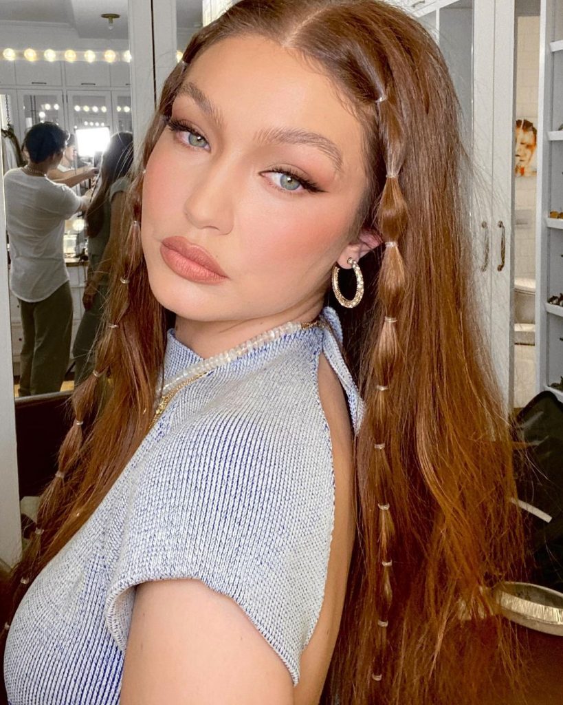 А вот Джиджи сделала все наоборот — трансформировалась из брюнетки в блондинку. Такой образ был у модели несколько лет назад, но сейчас прическа с пляжными локонами на ней выглядит еще лучше.