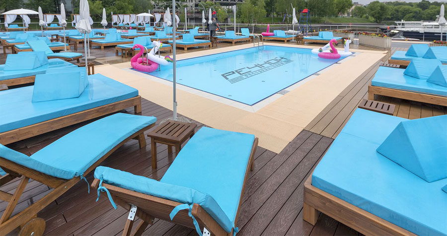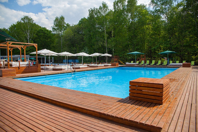 Пляжный бассейн прямо в парке «Сокольники». Гостям доступны два открытых бассейна (один из них с подогревом), площадка для волейбола, столы для игры в пинг-понг, зона барбекю, пляжные качели и шезлонги, прокат спортинвентаря, кафе с летней верандой. Есть как стандартная зона, так и VIP прямо у бассейна, а еще – большие кровати. В общем, идеальный вариант после летней прогулки по парку, не иначе.