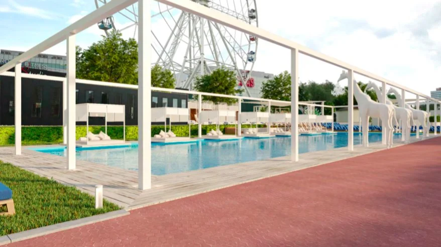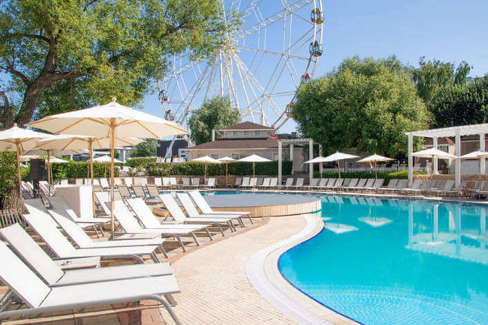 Здесь не требуется медицинская справка и есть все для того, чтобы устроить себе настоящую имитацию отпуска: стильные локации для фото (эти белые зонтики и колесо обозрения на фоне точно не останутся незамеченными в твоих социальных сетях), свое кафе с верандой, возможность арендовать шатры или бунгало для больших компаний. Посетители пишут, что здесь много молодежи, но и гостям с детьми будет комфортно.