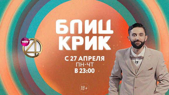 В 23:00 на канале ТНТ4 покажут шоу «Блиц-крик», в котором ведущий Рустам Рептилоид задает вопросы из разных областей знаний, а участники должны ответить на них или правильно, или смешно. Испытать себя придут Михаил Шац, Тамби Масаев, Гурам Амарян, Алексей Смирнов, Сергей Детков и другие.