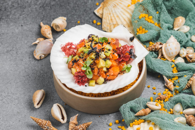 С наступлением жаркого сезона меню пополнилось новыми блюдами. Особое внимание обрати на холодные закуски. Выбрать сложно, все они вкусные, а еще очень «инстаграмные» — один тартар из лосося, украшенный съедобным золотом, чего стоит.
