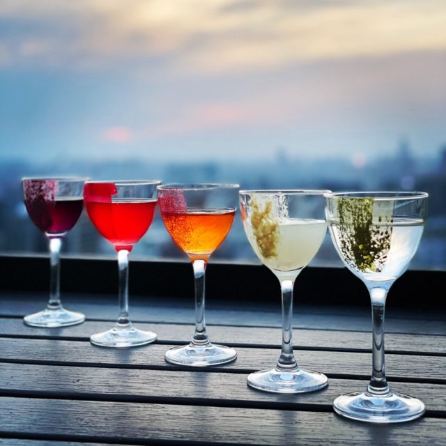 Специально для фестиваля Angostura Daiquiri Boom шеф-бармен Mercedes Bar Денис Кавешников создал эко-твисты на классический коктейль «Дайкири». Каждый коктейль готовится на основе рома Ангостура и отражает один из цветов неба на закате – от прозрачного до яркого.