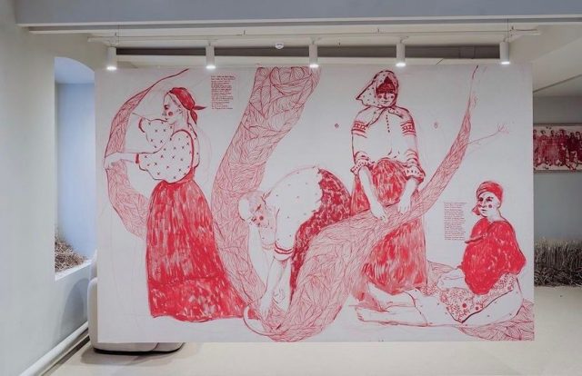 В конце ноября открылась выставка Ани Самойловой «Куда деть волю девичью?», которая пройдет в пространстве Arch(e)type Auditorium до 23 декабря. В рамках этой экспозиции художница представит работы из проекта «Земь», цель которого – исследование быта русской деревни. В своих картинах она переосмысляет обычаи, традиции и национальные костюмы.