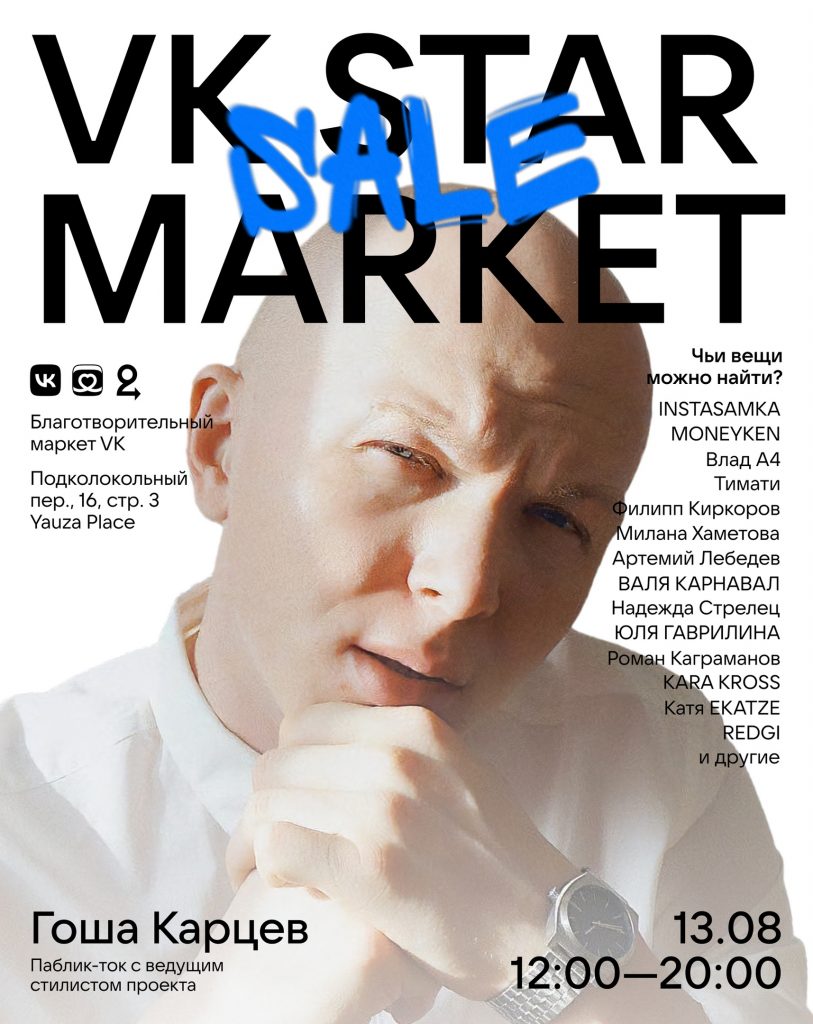 13 августа в московском пространстве Yauza Place пройдет VK Star Market. На мероприятии в формате «гараж сейла» любой желающий сможет сделать доброе дело: приобрести одежду и аксессуары известных артистов и блогеров и сдать свои вещи на благотворительность и переработку.