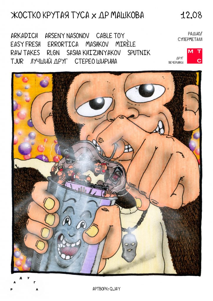 Еще одна вечеринка от диско-клуба «Радуга» пройдет в субботу, 12 августа, во дворе Суперметалла. Нас ждет ЖОСТКО КРУТАЯ ТУСА х ДР МАШКОВА, на которой выступят легенды рейва от мала до велика, включая Mirèle, стейдждайвинг и деликатный слэм️ в честь дня рождения Машкова.