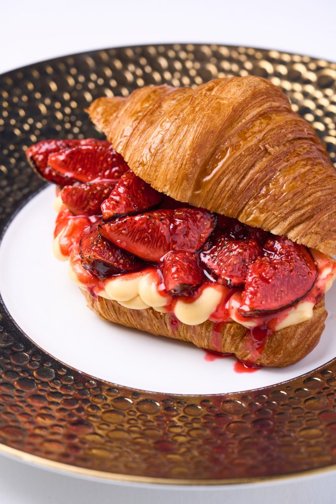 Круассан с инжиром и ванильным кремом (790₽) сменяет хит лета – круассан с земляникой. Он остаётся таким же нежным и насыщенным по вкусу, яркость земляники уступает место медовой сочности инжира.