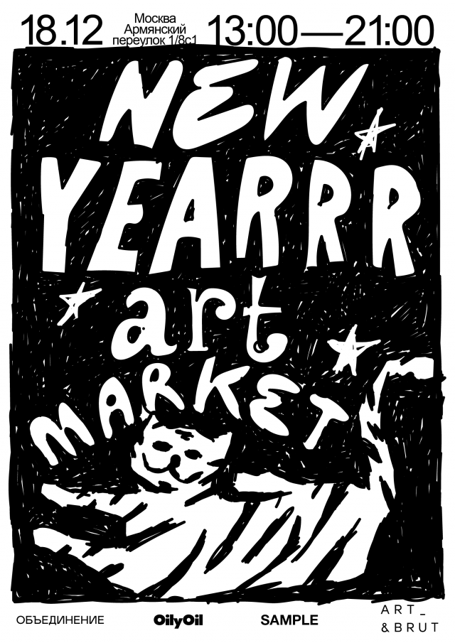 В эту субботу в пространстве ART & BRUT пройдет маркет современного молодого искусства NEW YEAR-R-R ART MARKET, организованный галереями SAMPLE, ОБЪЕДИНЕНИЕ, ART & BRUT и OILYOIL. На нем можно приобрести живопись, графику, скульптуру, керамику и принты, стоимость которых начинается от 5000 рублей. Мы считаем, это отличный вариант подарка всем ценителям прекрасного. А еще на маркете можно будет познакомиться с галеристами и узнать о работах художников из первых уст.