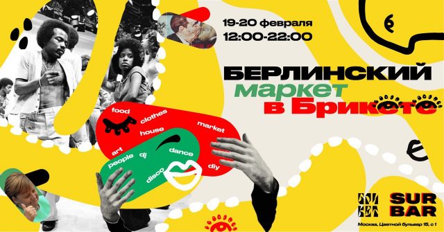 На фуд-корте «Брикет Маркет» в Универмаге «Цветной» пройдет двухдневный Берлинский маркет совместно с командой бара SUR. 19 и 20 февраля с 12:00 до 22:00 тебя будет ждать диско и фанк-сеты от любимых диджеев, более 40 локальных брендов с посудой, украшениями ручной работы, одеждой, картинами постерами, пластинками, винтажем, предметами для интерьера и многим другим.