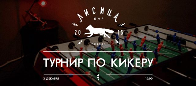 А тем, кому тусовки надоели, мы предлагаем сразиться с друзьями в… настольный футбол. В это воскресенье в баре «Лисица» пройдет настоящий турнир по кикеру. На него, правда, надо заранее записаться, но в целом почему бы и нет?