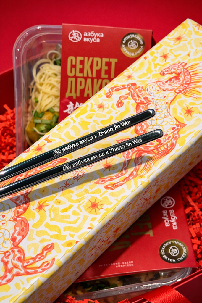 «Азбука вкуса» объединилась с художником Zhang Jin Wei в честь Китайского Нового года. Он представил арт-объект – уникальные палочки, которые стилизовал, вдохновившись символом года по восточному календарю – Огненной Лошадью. Коллаборация приурочена к выпуску лимитированной линейки китайских блюд «Секрет Дракона».