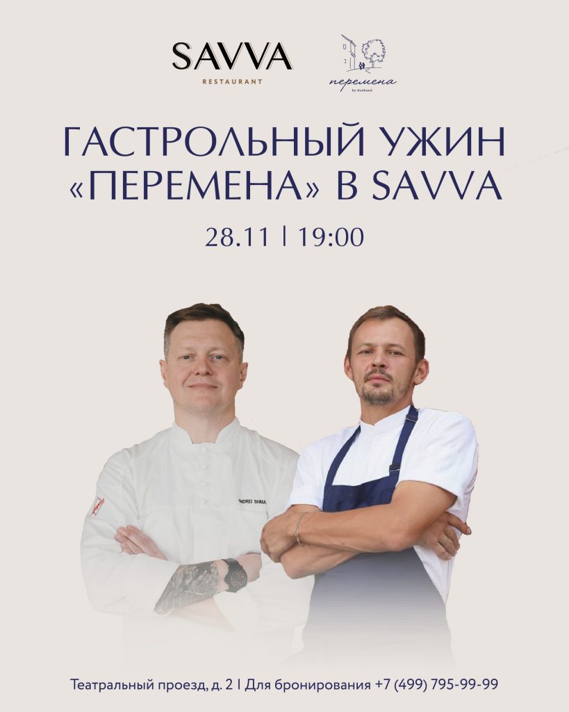 Событие пройдет в ресторане Savva. Шеф-повар «Перемены» Дмитрий Блинов представит три авторских блюда: дальневосточный гребешок с крыжовником, оладьи из цукини с тремя видами икры, фаланга краба с печеным картофелем, а шеф-кондитер Стас Пауль – шоколадный бисквит с желе из кваса. Также без угощений не оставят гостей бренд-шеф Savva Андрей Шмаков и шеф-кондитер Артем Грачев.