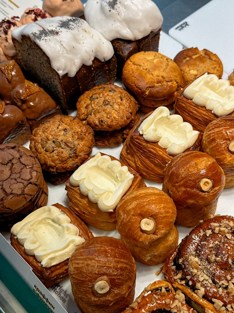 В выходные рекомендуем начинать утро правильно. Например, со сбалансированного завтрака в Angel Cakes. В меню появились сезонные новинки, которые точно понравятся девушкам, следящим за питанием. Среди них – макарон со вкусом пряного глинтвейна, донат тыква-попкорн, тост с индейкой пастрами и протеиновые бейглы. Отличным дополнением будут согревающие напитки: матча с черным кунжутом, пряный американо с гранатом и другие интересные позиции.