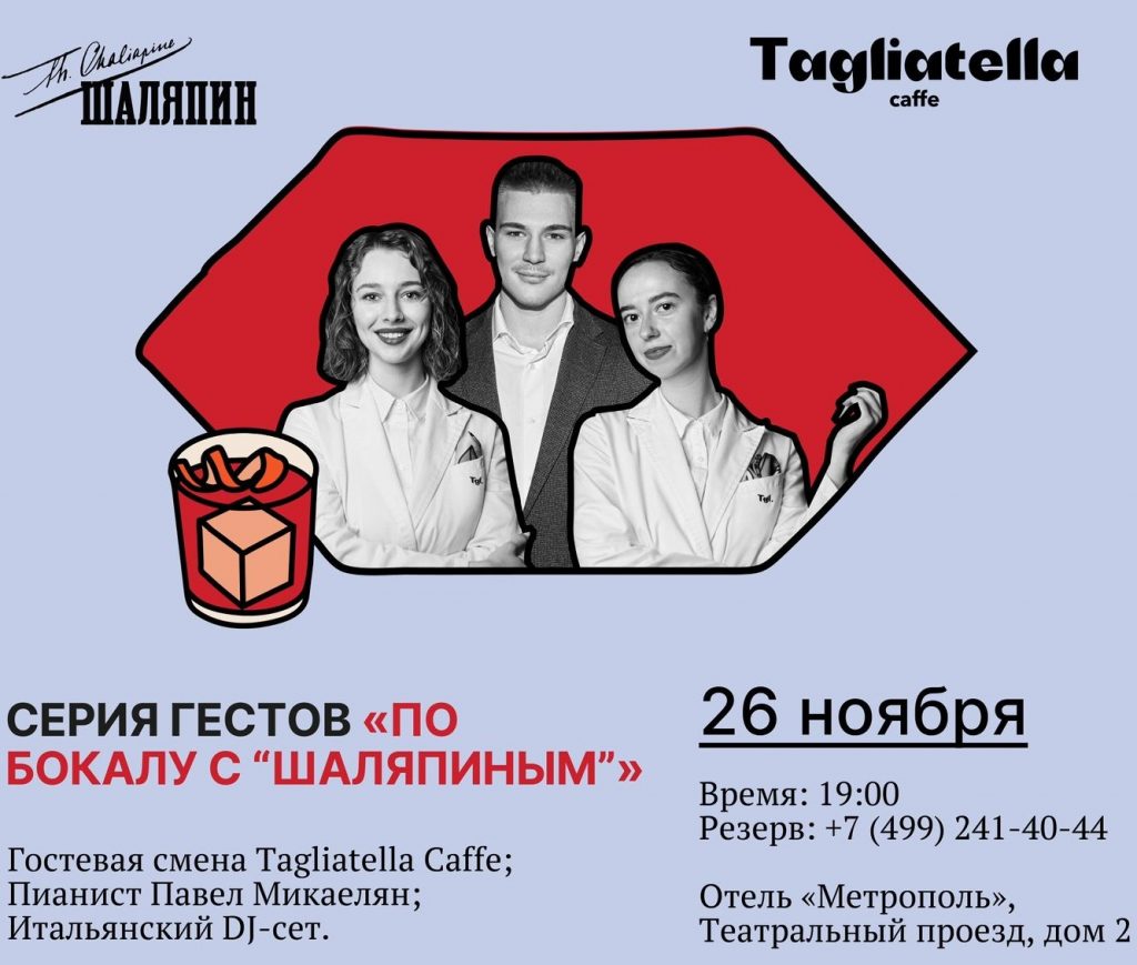 Среда – это маленькая пятница, поэтому 26 ноября можно отправиться в бар «Шаляпин» на дегустацию авторских коктейлей. Здесь пройдет гостевая смена женского аперитивного проекта Tagliatella Caffe во главе с бар-менеджером Алиной Ульяновой и бар-леди Александрой Черновой. Мероприятие будет сопровождаться живой музыкой в исполнении пианиста Павла Микаеляна. Завершится вечер сетом от DJ Vanya Vega.