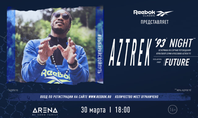 В Arena by Soho Family пройдет очень крутая вечеринка Reebok в честь перезапуска культовых кроссовок Reebok Aztrek`93. Хедлайнер – барабанная дробь – рэпер Future!