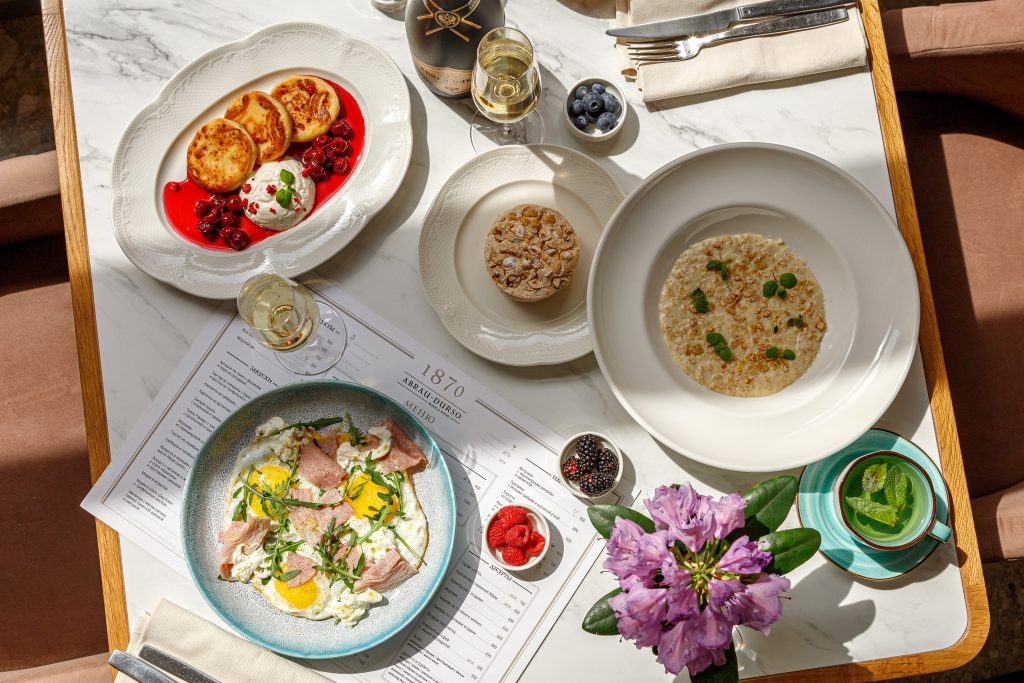Над созданием завтраков трудился приглашенный шеф-повар Сантьяго Торрихос. Сантьяго долгое время работал во Франции (Plaza Athenee, Guy Martin, Atelier Rodier), откуда привез нестандартное видение вкусовых сочетаний. Так появилось разнообразное предложение завтраков, в котором нашлось место как знакомой классике на каждый день, так и новым интересным позициям.