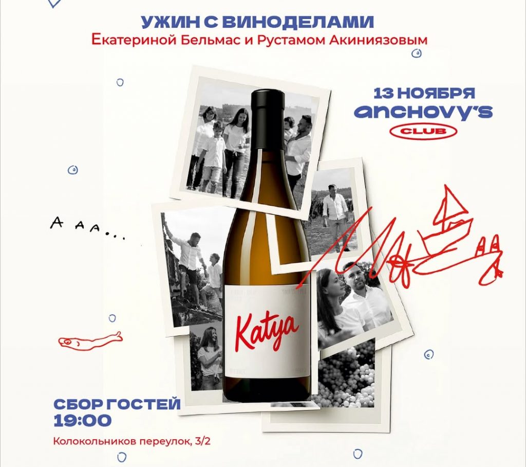 Советуем уже сейчас планировать досуг на следующую неделю. Нашли для тебя интересное событие. 13 ноября в Anchovy’s Club пройдет фестиваль российского вина вместе с представителями семейной винодельни Екатериной Бельмас и Рустамом Акиниязовым. Они расскажут о создании винодельни и представят образцы.