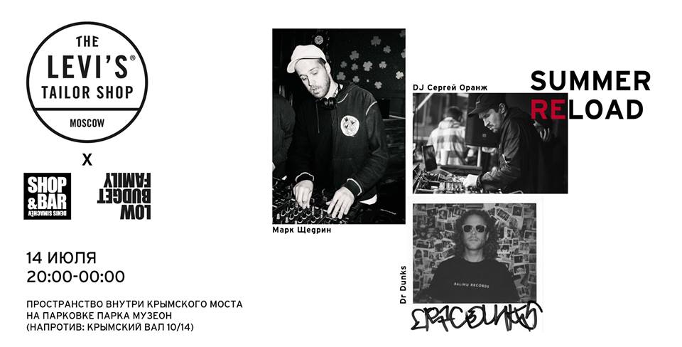 Вечеринок в эти выходные будет много, но самая необычная пройдет уже сегодня вечером в новом креативном пространстве Levi’s Tailor Shop под Крымским мостом – там запускают серию выездных вечеринок Denis Simachev Shop & Bar, и сегодня за пульт в Levi’s встанут Марк Щедрин, Сергей Оранж и Dr. Dunks. Приходи, будет весело.