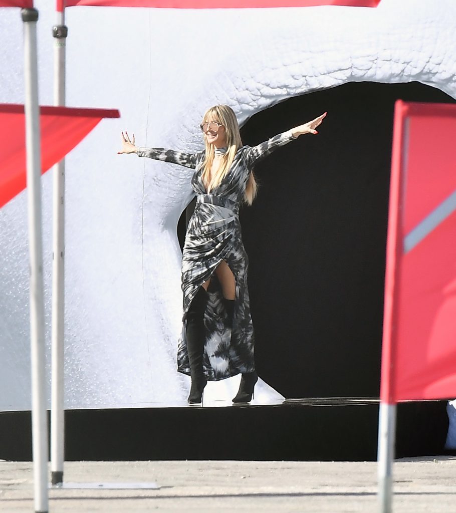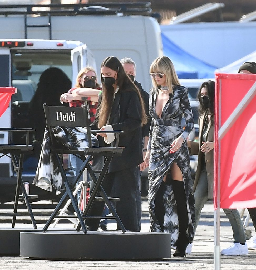 На съемках Хайди появилась в откровенном образе. Клум предстала в струящемся черно-белом платье с глубоким вырезом. Свой образ модель дополнила черными ботфортами, очками авиаторами с цветными линзами и золотыми украшениями. Уверены, звезда отлично выглядела в кадре!