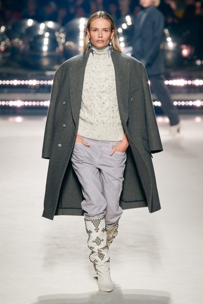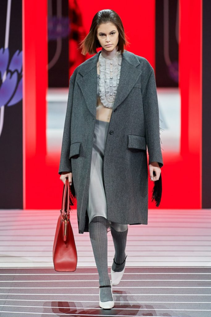 На мужское серое пальто сделали ставки и Prada, и Alberta Ferretti, и Fendi. Дизайнеры предлагают носить его с платьями миди, высокими сапогами, массивными цепями и казаками.