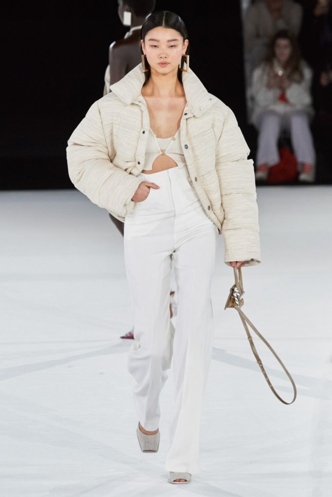 В этом сезоне носи укороченный пуховик. В идеале выбирать такой, как на показе Jacquemus! Носить его можно с джинсами, спортивными костюмами и даже платьями.