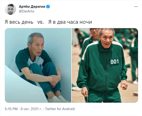 «Игра в кальмара» заслуженно носит статус абсолютного хита Netflix, и вот уже несколько недель в социальных сетях то и дело обсуждают сериал. И, конечно, не обходится без мемов. Их и собрали!