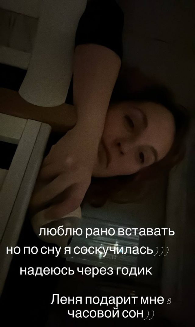 Актриса призналась, что скучает по сну, ведь регулярно встает по ночам, когда малыш просыпается. Она надеется, что где-то через годик Леня подарит ей восьмичасовой сон.
