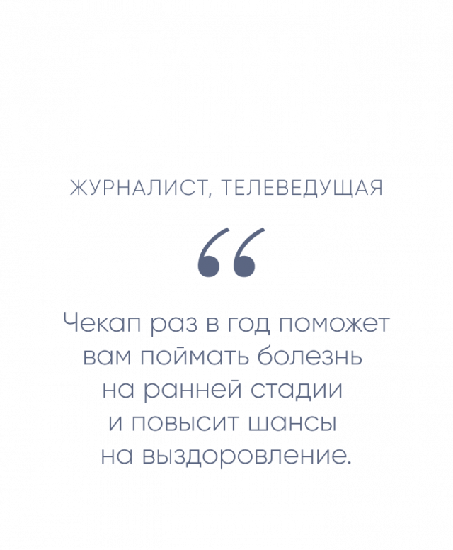 Единственный совет, который я постоянно всем даю и пишу в соцсетях: проверяйте грудь и организм каждый год. Чекап раз в год поможет вам поймать болезнь на ранней стадии и повысит шансы на выздоровление.