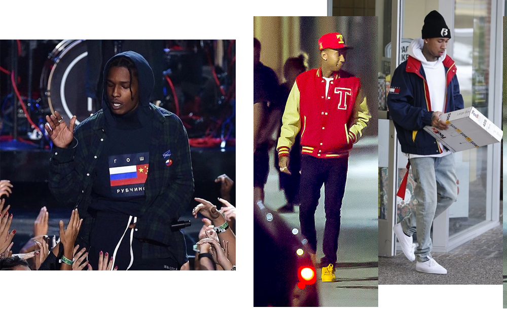 Когда смотришь на Тайгу, создается впечатление, что он – младший брат A$AP’a Rocky. Пока Раким (настоящее имя Роки) скупал последние коллекции Gucci и носил худи Гоши Рубчинского до того, как это стало мейнстримом, Тайга ходил в джинсовках Tommy Hilfiger и красных бомберах с кожаными рукавами. Единственное, чему он не изменяет уже много лет, – это огромное количество толстенных цепей, как у Басты Раймса (44), но выглядит это так позерски, что иногда думаешь: у него мозоли от них на шее не появляются?