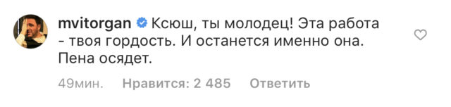 В комментариях Ксению поддержал ее бывший супруг Максим Виторган: «Ксюш, ты молодец! Эта работа — твоя гордость. И останется именно она. Пена осядет». И мы с ним полностью согласны.