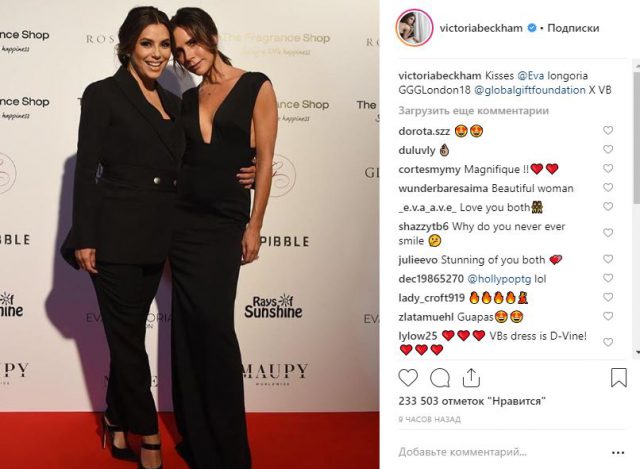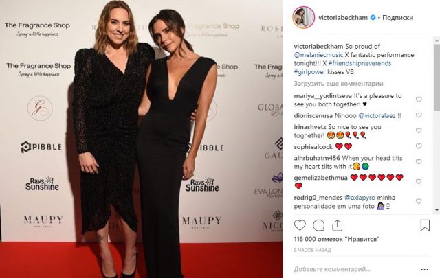 Кстати, на Global Gift Gala Виктория встретилась со своей бывшей коллегой по группе Spice Girls Мелани Си (44). В Instagram дизайнер выложила фото с певицей и написала: «Так горжусь @melaniecmusic, это было фантастическое выступление # friendshipneverends #girlpower».