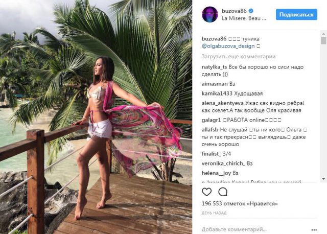 Сейчас Ольга Бузова (31) наслаждается солнышком на Сейшельских островах (именно здесь проходят съемки шоу «Дом-2»). Свободное время телеведущая проводит на пляже и публикует в Instagram фото в ярких купальниках. Но поклонники звезды не спешат с комплиментами.