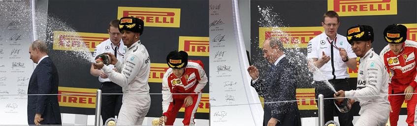 Льюис давно известен своими выходками с шампанским. Уже не в первый раз гонщик обливает «не тех, кого надо». Например, во время Гран-при Китая в Шанхае гонщик плеснул шампанским в лицо девушке, стоящей рядом.