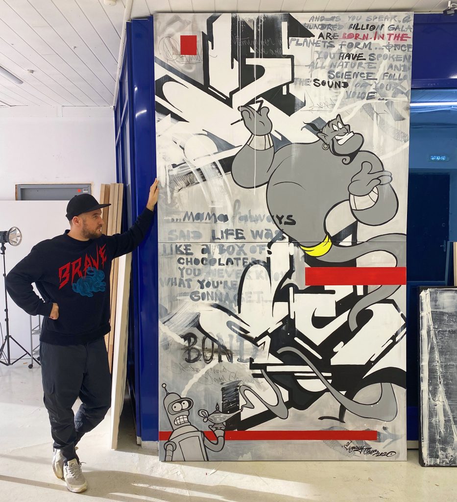 Сегодня он работает на стыке граффити, абстракции и эстетики массовой культуры, сотрудничает с брендами, популяризирует искусство и постоянно двигается вперед. Пора познакомиться с ним поближе! Начнем?