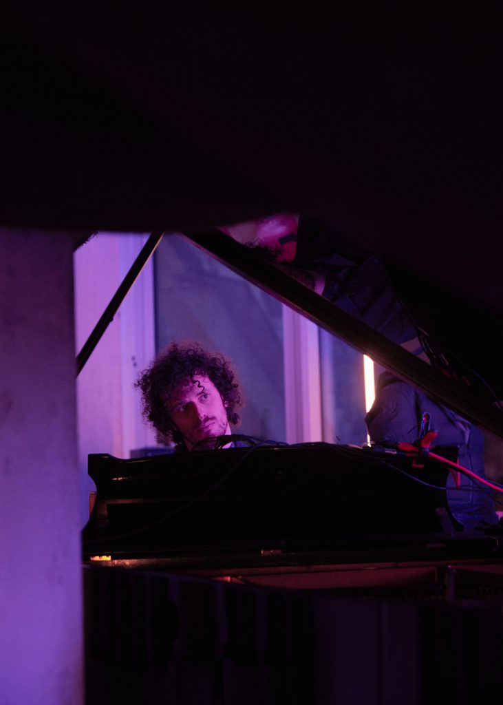 Сам он называет себя мультидисциплинарным артистом, а его живые выступления складываются из импровизации, экспериментов с пространством и технологиями. Световые инсталляции, генеративная графика, использование искусственного интеллекта, игра на электроакустическом рояле – лишь часть инструментов, с помощью которых артист взаимодействует с публикой.