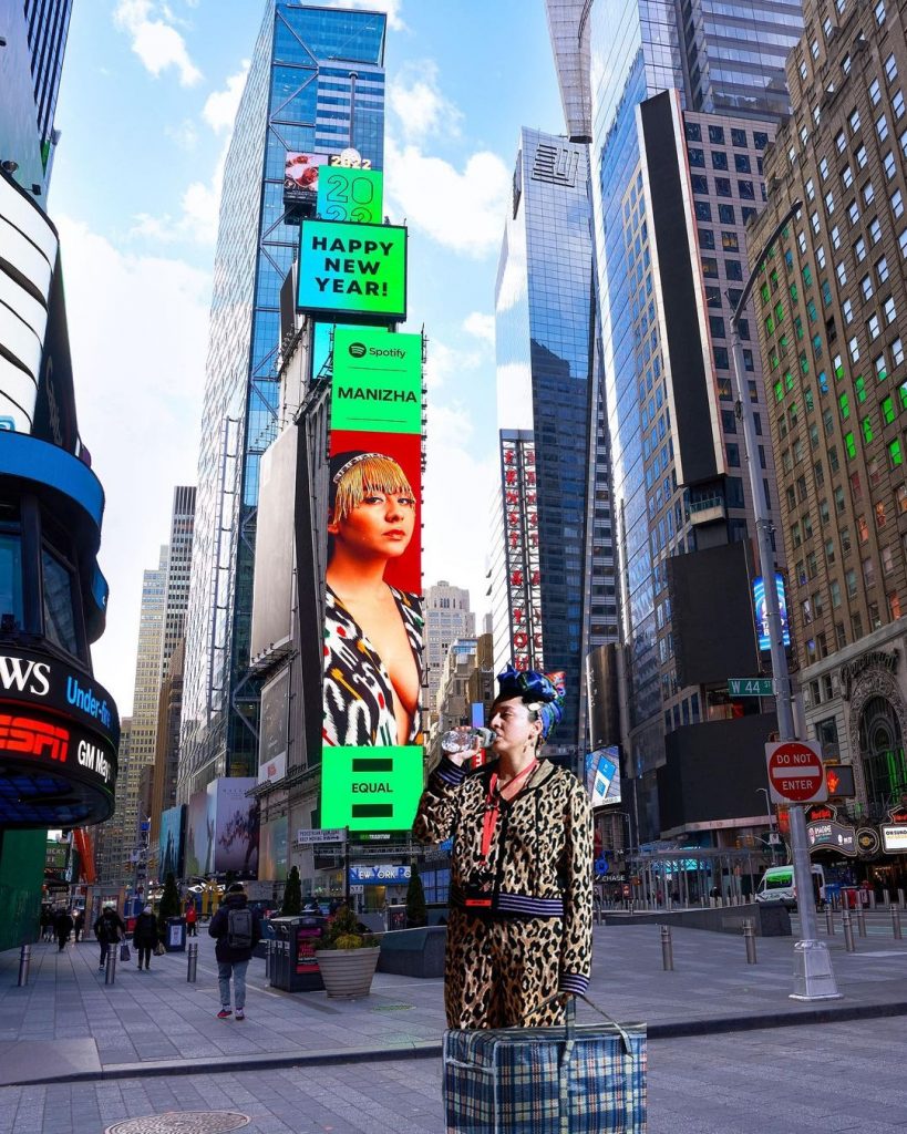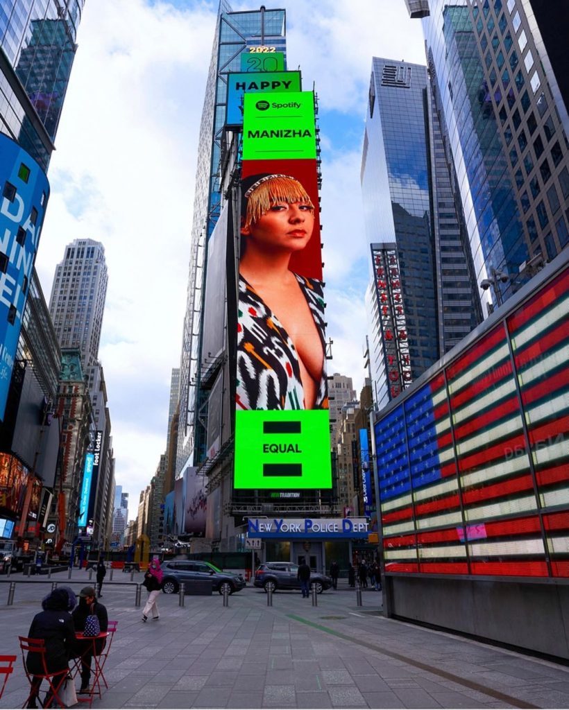Сама Манижа поделилась в своем Instagram восторженной новостью — теперь изображение с ней висит на билборде в самом сердце Нью-Йорка на Таймс-сквер.