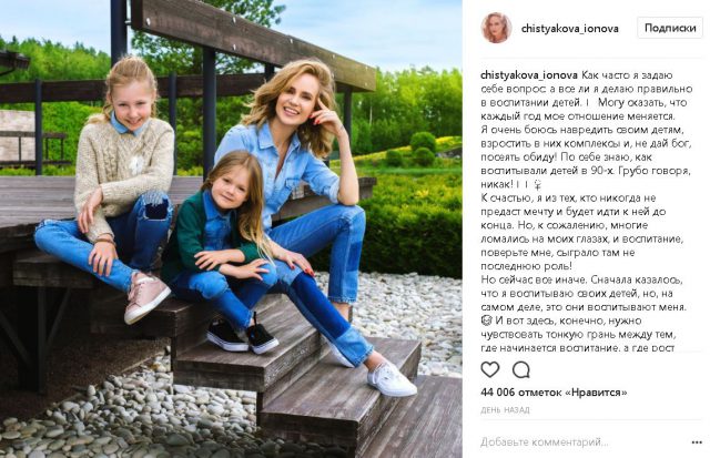 Вчера, например, Глюкоза решила поделится с подписчиками методами воспитания: «Я очень боюсь навредить своим детям, взрастить в них комплексы и, не дай бог, посеять обиду», — начала Наташа.