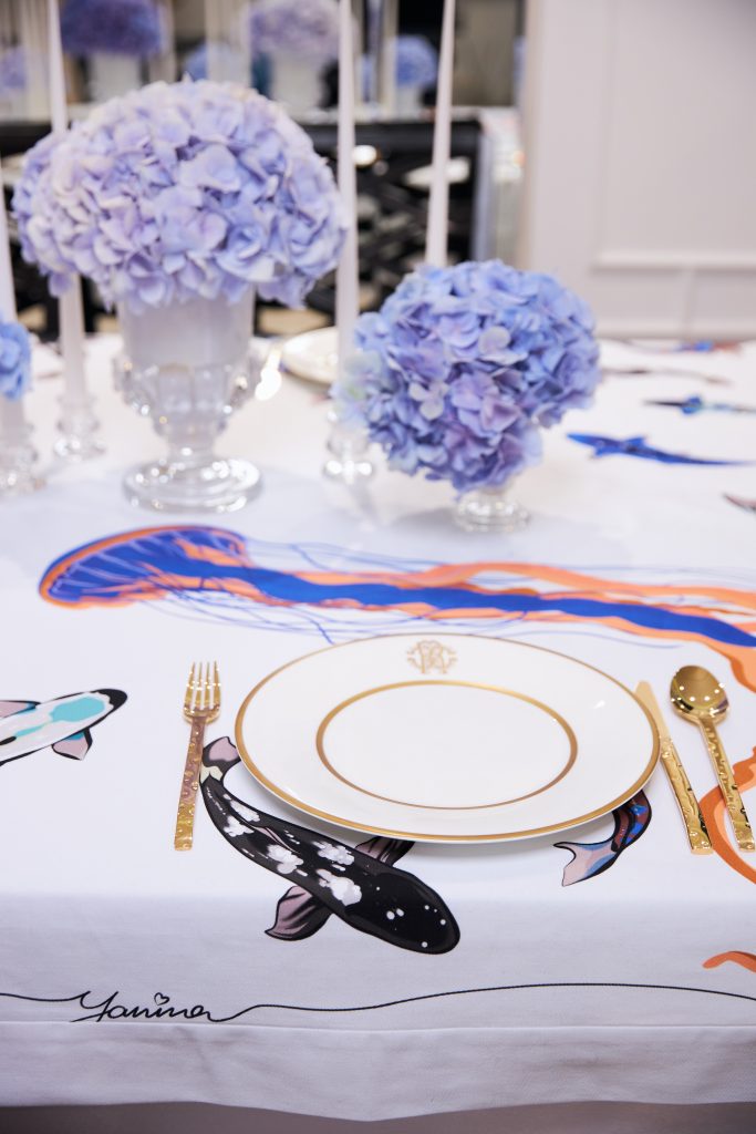 Накануне нам повезло стать гостями презентации первой коллекции домашнего текстиля бренда Yanina в галерее That’s Living, в дополнение которой звездный декоратор Лидия Симонова составила изысканные композиции. И, признаться честно, это было наше самое правильное решение отправиться туда, отложив все заботы на потом. Соавтор коллекции Юлии Яниной соединила яркие предметы столового текстиля YANINA Home Collection с живыми цветами, фарфором, разноцветными вазами и сверкающими приборами из коллекции интерьерного дома THAT’S LIVING, которые мгновенно тебя перемещали с холодной Москвы в атмосферу домашнего уюта и семейного застолья. А спокойные голубые и розовые тона изображений на текстиле, выполненные собственноручно Юлией, добавляли в итак теплые впечатления от коллекции еще и приятные воспоминания о лете.