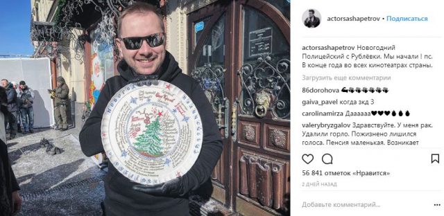Пару дней назад Александр Петров (29), исполнитель главной роли в сериале «Полицейский с Рублевки», объявил о начале съемок третьей части проекта. В Instagram выложил фото с традиционной киношной тарелочкой, на которой написана вся команда, и подписал ее: «Новогодний «Полицейский с Рублёвки». Мы начали! П.С. В конце года во всех кинотеатрах страны». А это значит, что в конце 2018-го нас ждет полный метр!