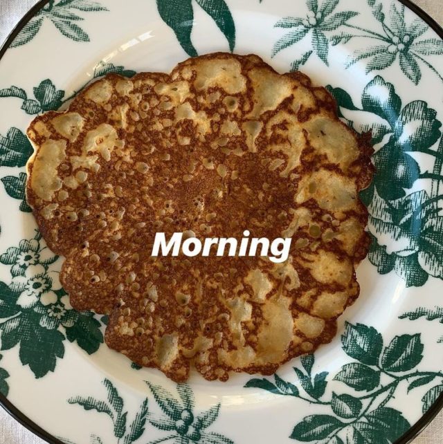 Также мама троих детей по воскресеньям любит готовить банановые или тыквенные оладьи.