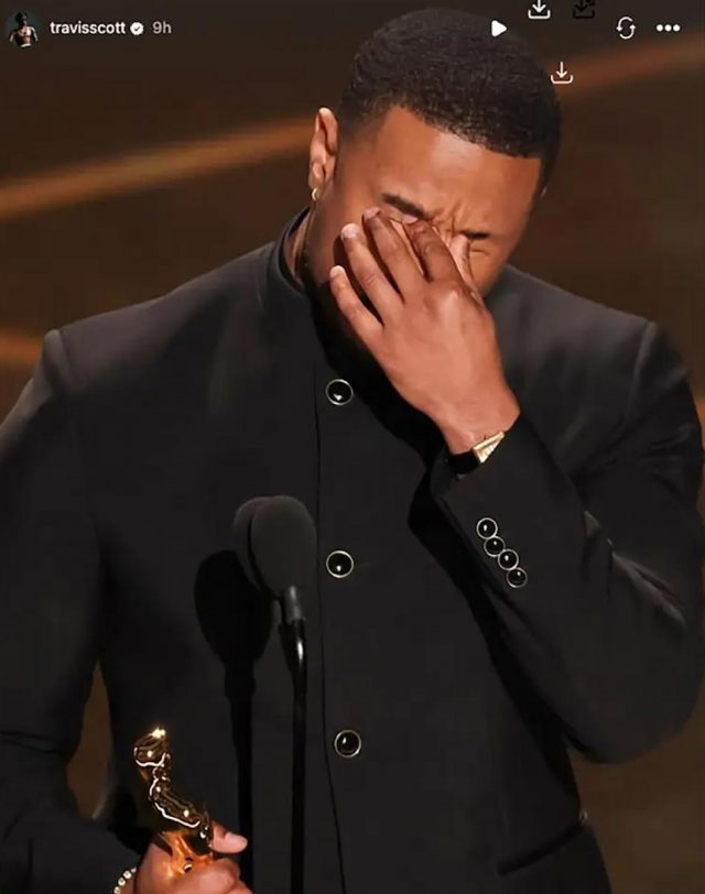 Трэвис Скотт опубликовал в Instagram* Stories фото Майкла Б. Джордана с наградой за лучшую мужскую роль, а также отдельно отметил режиссера «Грешников» Райана Куглера.