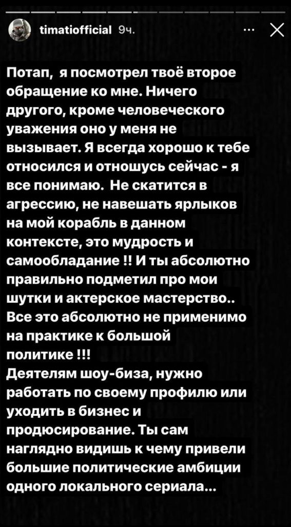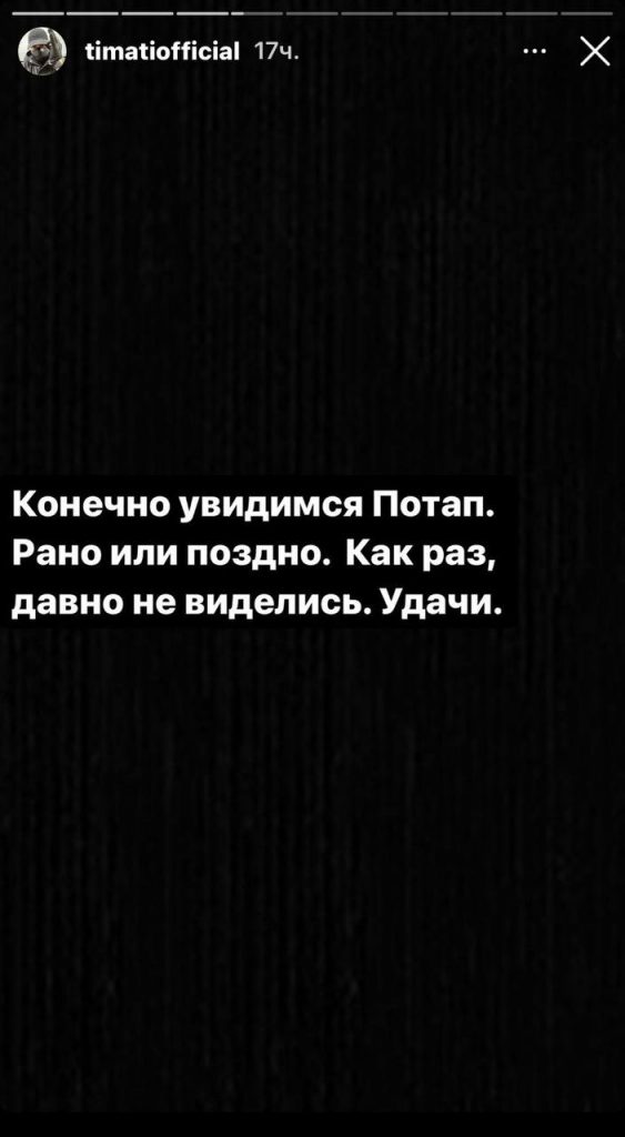 Ответ Тимати не заставил себя ждать. Рэпер обратился к Потапу у себя в Instagram.