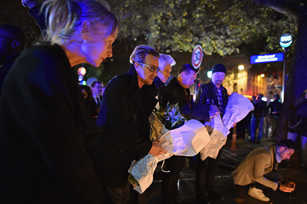 На следующий день после террористической атаки солист группы U2 Боно (55) и остальные члены группы принесли цветы к стенам концертного зала «Батаклан», чтобы почтить память погибших.