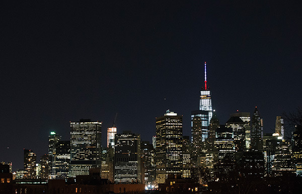 В Нью-Йорке в ночь, когда стало известно о случившемся, шпиль башни Всемирного торгового центра 1 загорелся цветами французского флага.